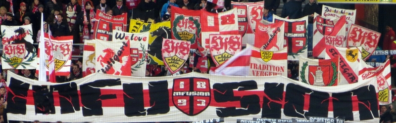 Anpfiff; Samstag 15.30 Uhr; ein VfB-Heimspiel ? – Welch Wunder. Dennoch nutzen wir diese Chance, unsere kompletten Doppelhalter in einem kleinen aber feinen Intro zu präsentieren. Zusätzlich wurde unsere Zaunfahne wieder mal eingesetzt, so dass die Aktion “Intensivierung der Repression ? – Unsere Antwort: DH-Intro !!!” ansehnlich abgerundet wurde. Andere Fangruppen der Cannstatter Kurve unterstützten diese Aktion auch, sodass aus unserer Sicht von einem gelungenen Tag gesprochen werden kann.